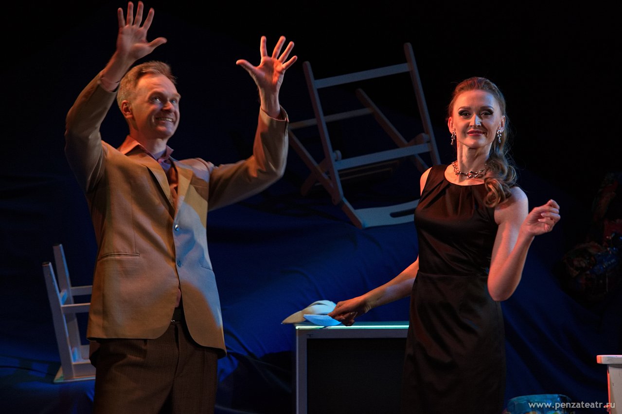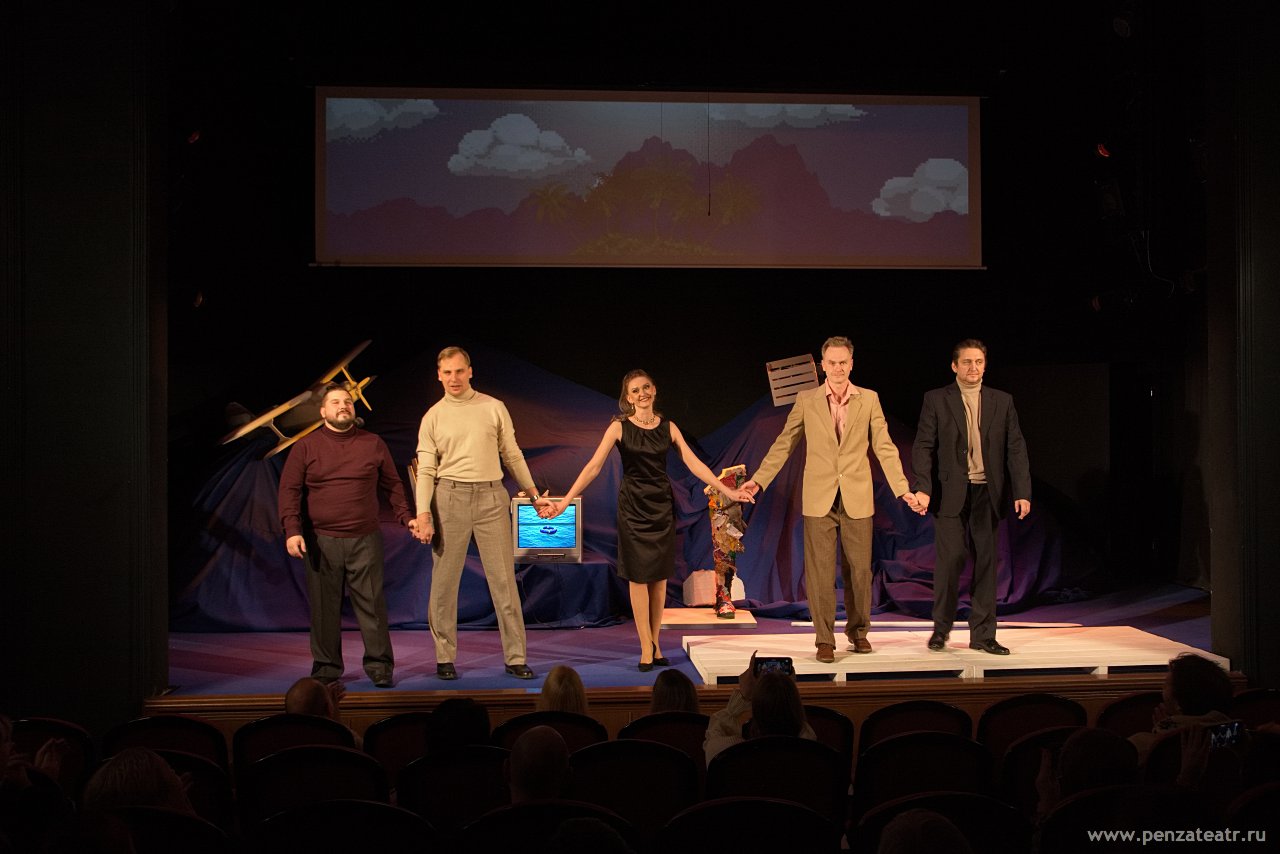 Поздравляем с премьерой всю театральную общественность Пензы, весь коллектив театра, занятых в спектакле актёров (причём большинство из них сыграло не по одной роли): Николая Потапова (Иван Петрович Сидоров), Павла Тачкова (Коля, Охранник, туземец Матумба, Кинооператор), Никиту Кузина (Петя, Охранник, Туземец, иностранный журналист Гопкинс), Юлию Кузьмину (блондинка Мэри, Официантка, туземка Таонга, Телеведущая) и Артёма Давыдова (олигарх Костик, он же российский консул)!