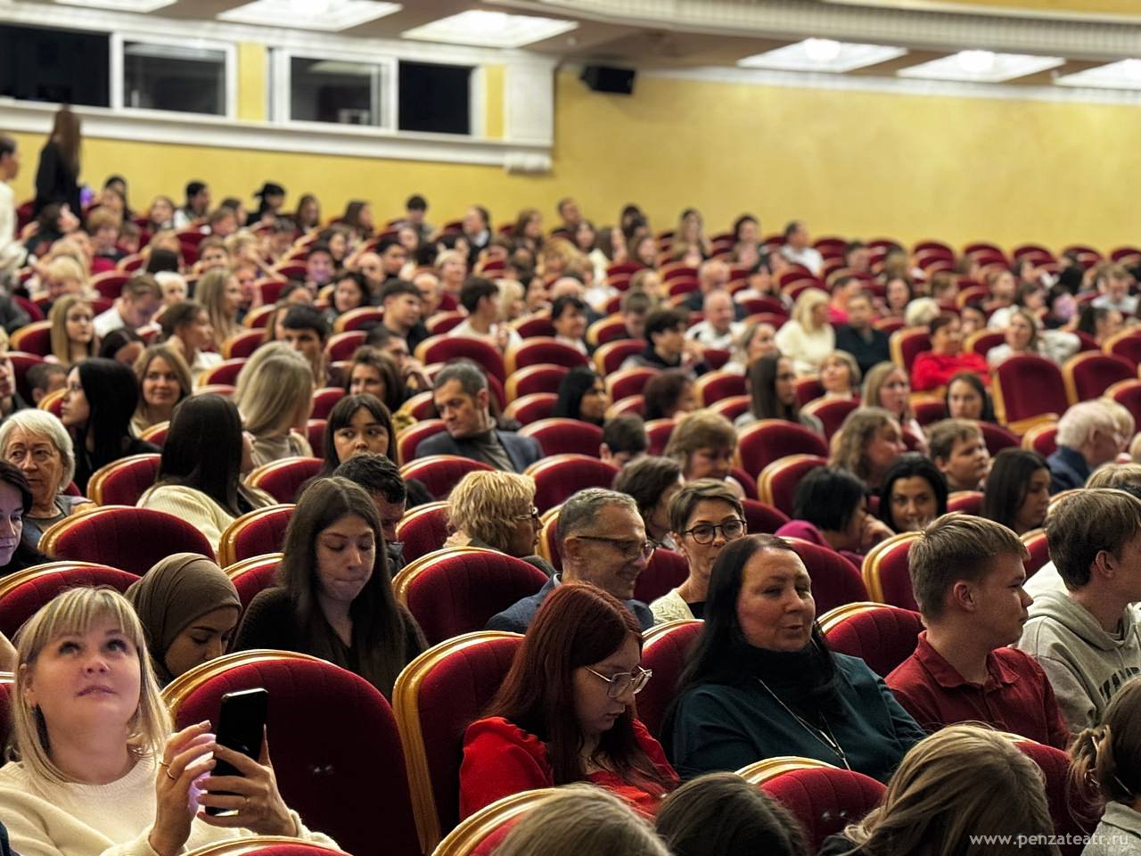 Зал был полон. Среди зрителей в этот вечер было немало молодых людей — старшеклассников школ и студентов колледжей Пензы и Пензенской области из Башмаковского, Кузнецкого, Малосердобинского районов, посетивших спектакль по «Пушкинской карте».