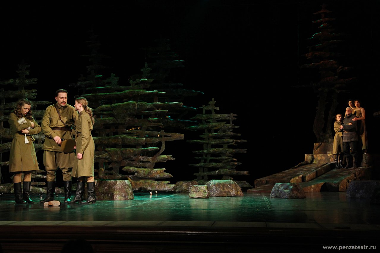 9 декабря, в День героев Отечества, на большой сцене уже в 15-й раз прошел спектакль «А зори здесь тихие...» по повести Бориса Васильева в постановке московского режиссера Евгении Тодоровой.
