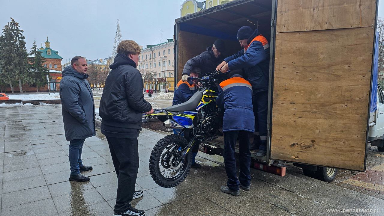 18 декабря на Театральной площади у центрального входа Пензенского драматического театра состоялась отправка гуманитарной помощи для участников специальной военной операции. Сотрудники регионального Министерства культуры и туризма и подведомственных ему учреждений, включая областной драмтеатр, объединили усилия по сбору средств, чтобы отправить военнослужащим технику особой важности — мотоциклы.