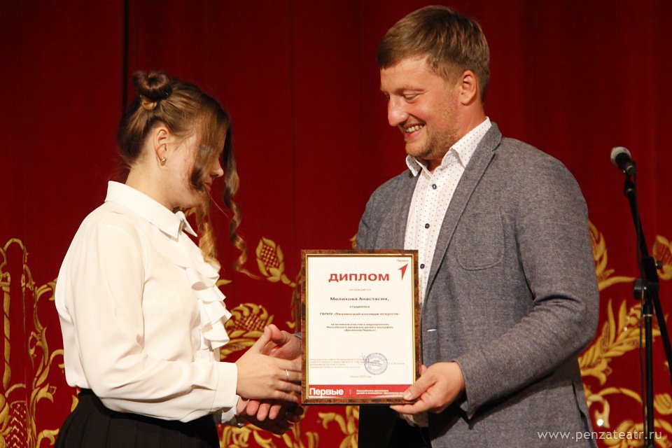 Председатель Совета регионального отделения «Движения первых» Сергей Холюков вручил благодарственные письма активистам организации. Особых благодарностей за содействие деятельности Движения были удостоены Сергей Казаков и врио директора театра Александр Минаев.