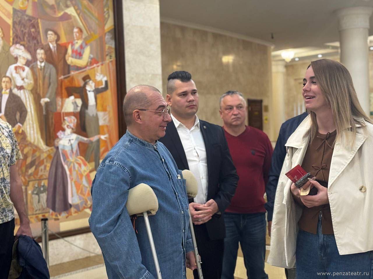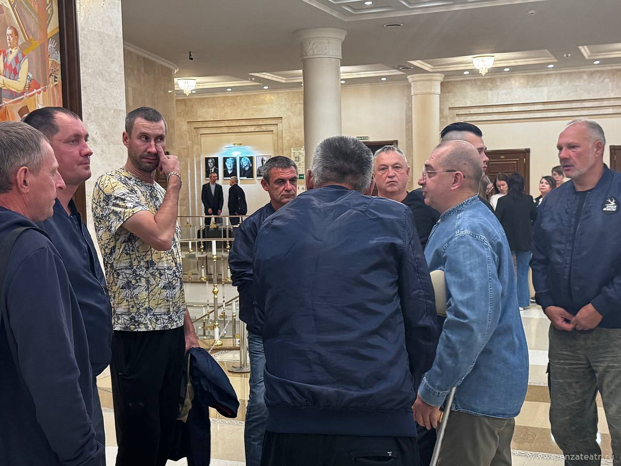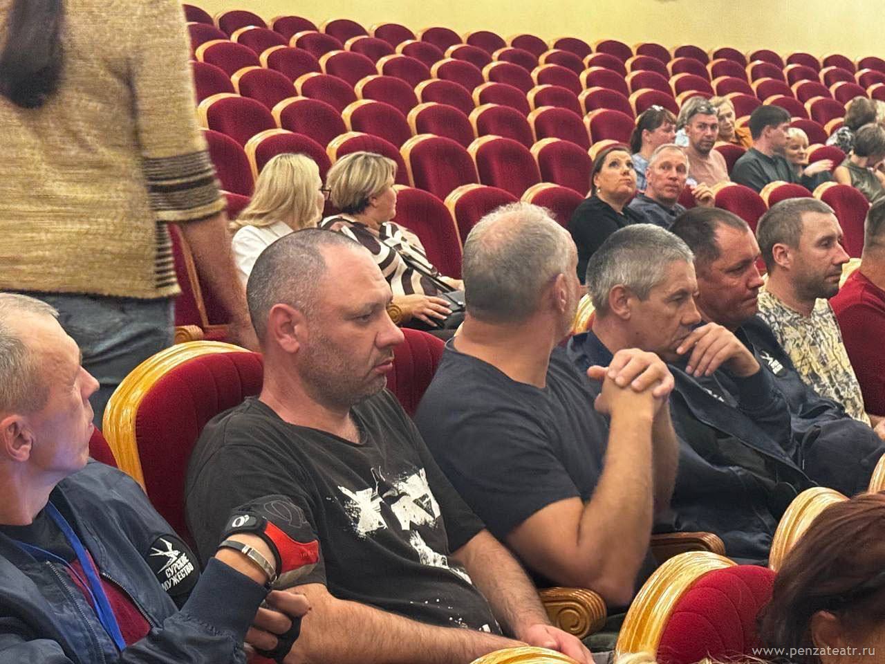 Народный артист России, художественный руководитель Пензенского драматического театра Сергей Казаков лично приветствовал бойцов в холле и проводил в партер.