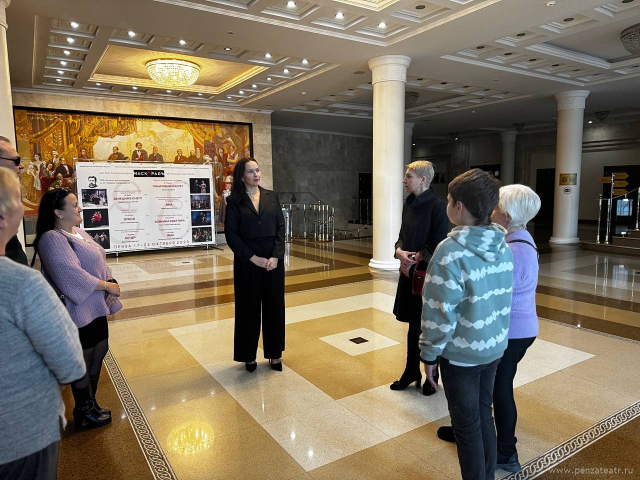 Заслуженный работник культуры Пензенской области, актриса театра Вера Дупенко подробно рассказала историю драмтеатра от создания до наших дней, пригласила гостей на Шестой Международный театральный фестиваль «Маскерадъ», познакомила с миром закулисья и показала экспонаты, хранящиеся в музее истории театра.