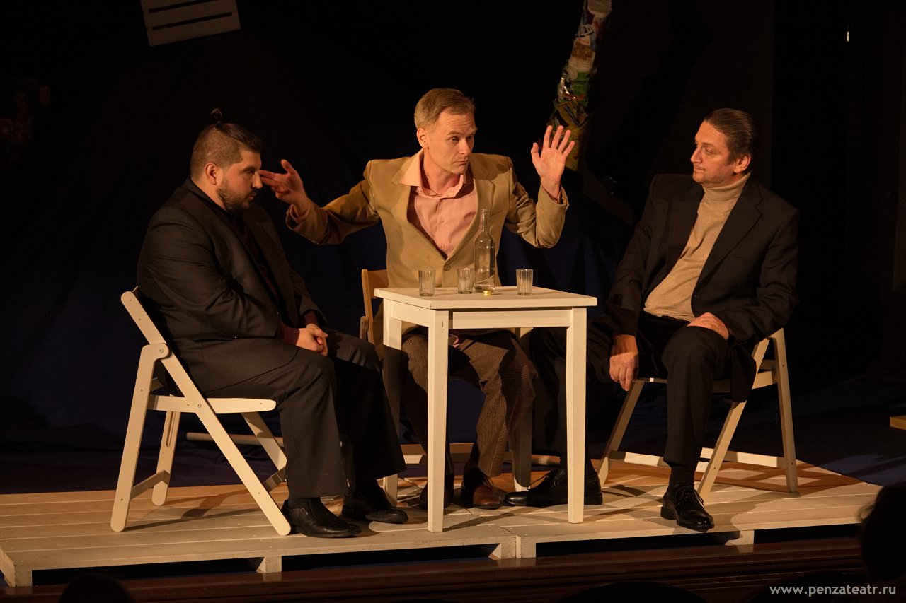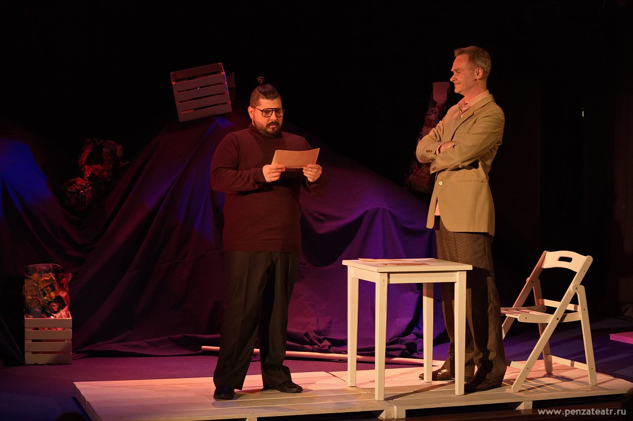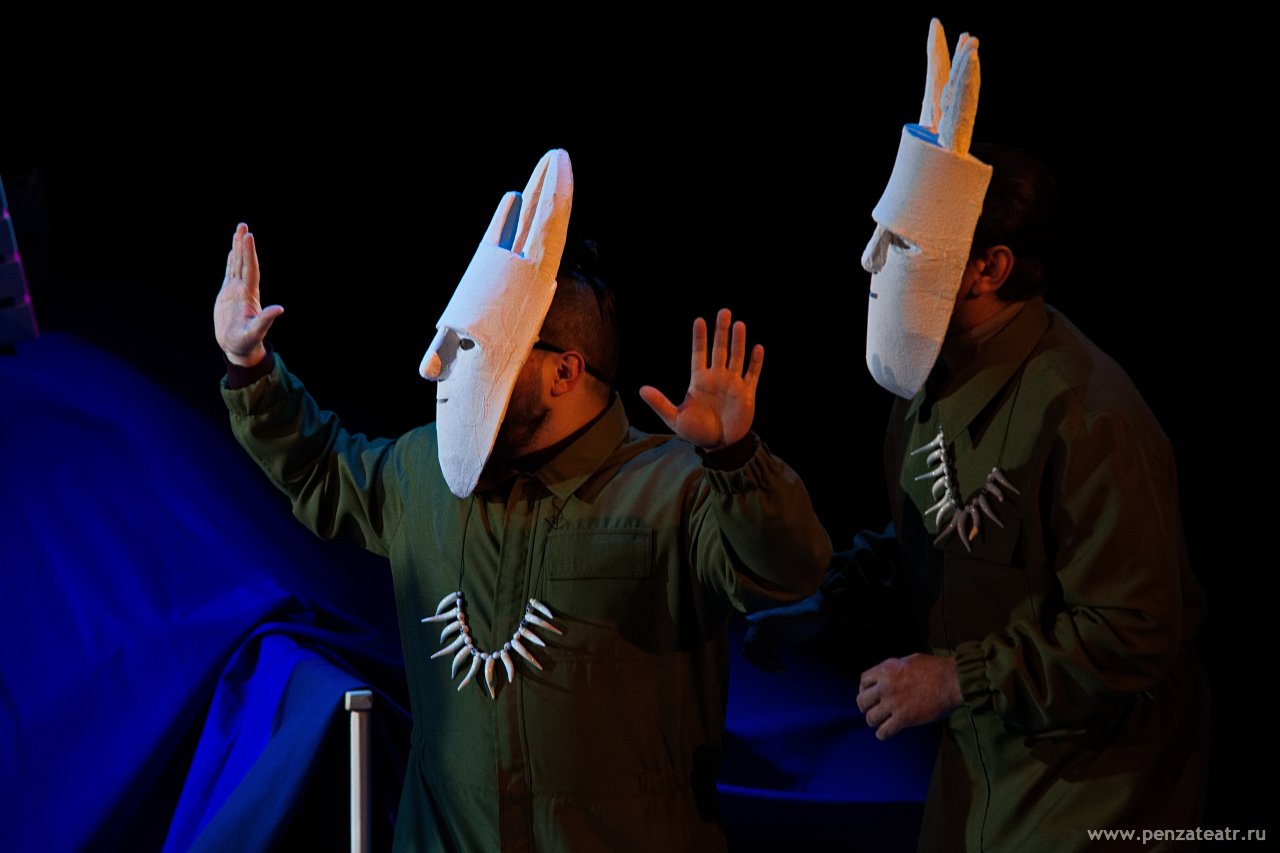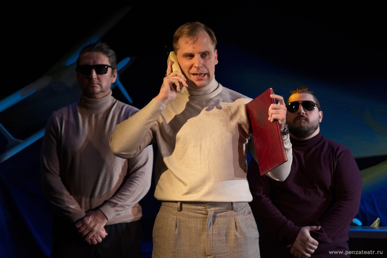 Поздравляем с премьерой всю театральную общественность Пензы, весь коллектив театра, занятых в спектакле актёров (причём большинство из них сыграло не по одной роли): Николая Потапова (Иван Петрович Сидоров), Павла Тачкова (Коля, Охранник, туземец Матумба, Кинооператор), Никиту Кузина (Петя, Охранник, Туземец, иностранный журналист Гопкинс), Юлию Кузьмину (блондинка Мэри, Официантка, туземка Таонга, Телеведущая) и Артёма Давыдова (олигарх Костик, он же российский консул)!